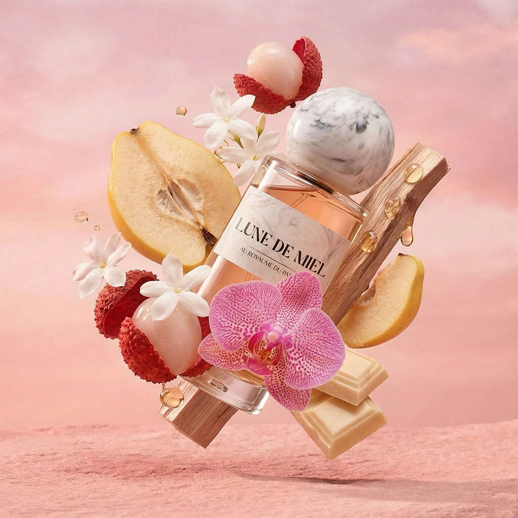 LUNE DE MIEL est un extrait de parfum féminin où la douceur fruitée rencontre une sensualité florale délicate.