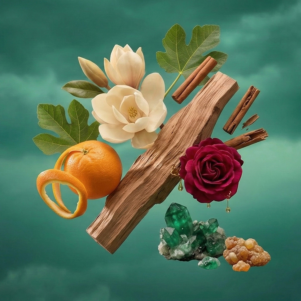 La fraîcheur des agrumes et des notes vertes s’accorde parfaitement avec la chaleur des épices et des bois nobles, créant une fragrance harmonieuse et sophistiquée.
