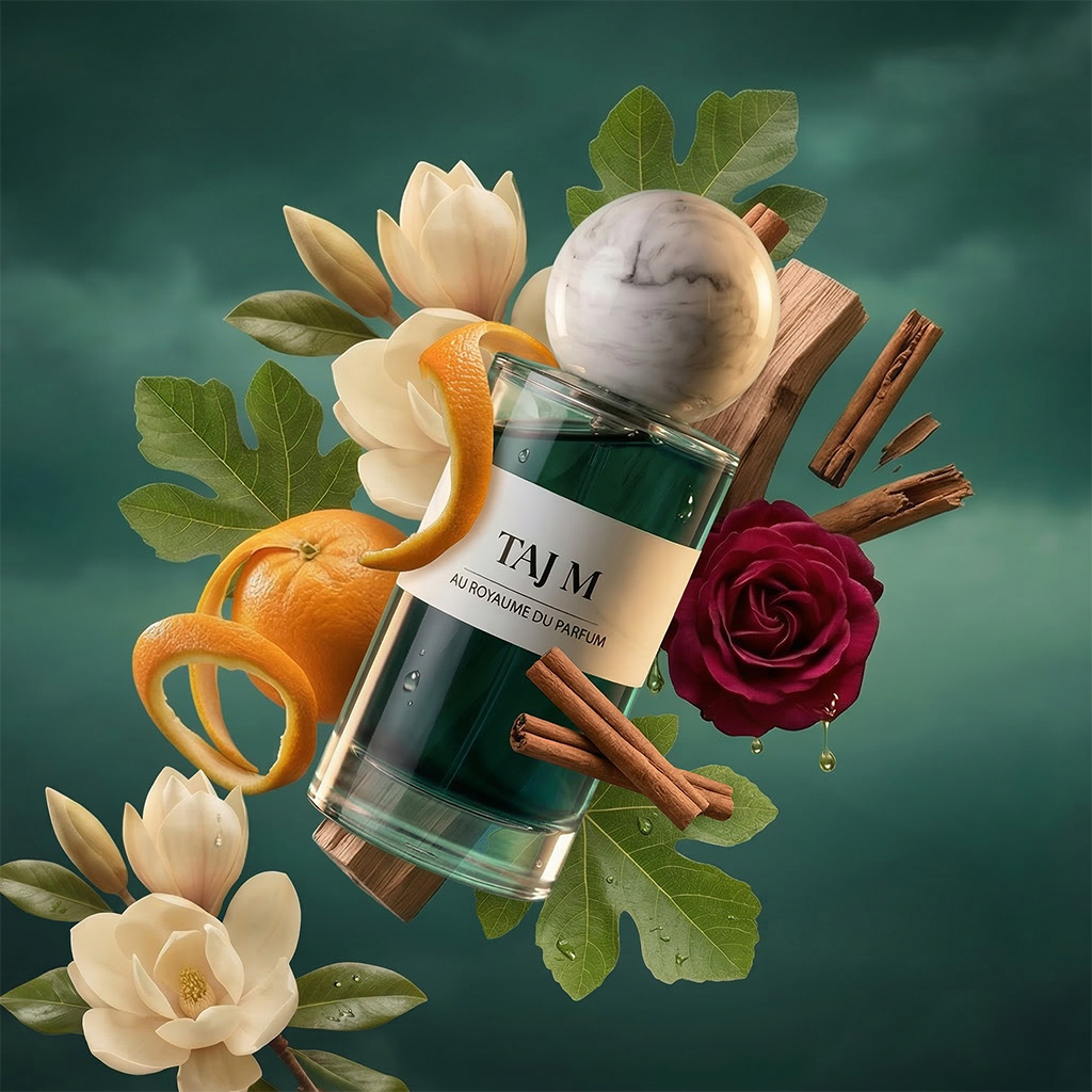 À la fois lumineux et enveloppant, TAJ M associe la fraîcheur éclatante des agrumes à la profondeur chaleureuse des bois et des épices. Cette composition équilibrée incarne une masculinité sereine, moderne et distinguée.